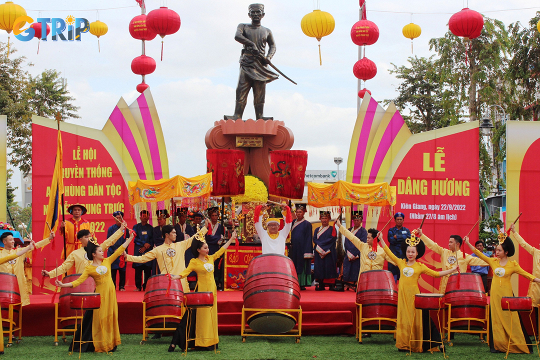 The Nguyen Trung Truc Festival, also known as the Nguyen Temple Festival, stands as a unique cultural event in the Mekong Delta region, particularly in the captivating land of Kien Giang. This event was originally organized by the locals to pay their respects to the national hero - Nguyen Trung Truc, after being passed down through generations, it became deeply ingrained in the lifestyle of people in the West and became a great significance event.