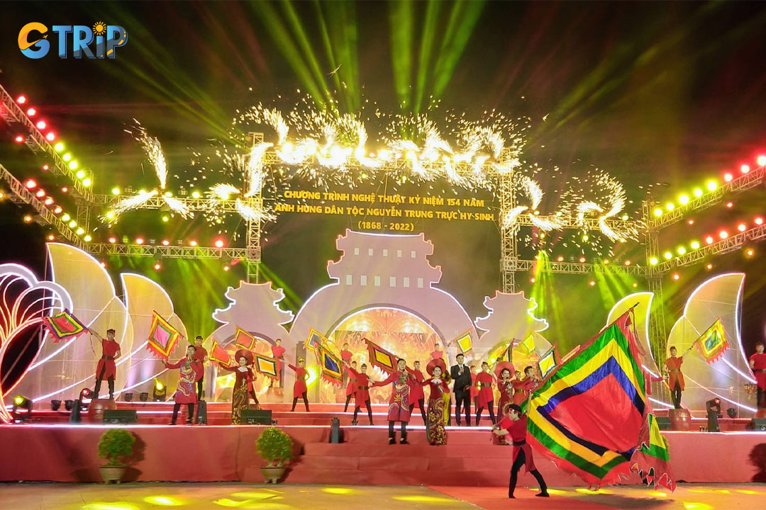 Starting the Nguyen Trung Truc Festival will be the ceremony, the abbot or management of the temple will perform a variety of rituals. After that, the indigenous people can go to the communal house to offer incense to Mr. Nguyen to express their sincerity and ask the ancestors to bless the good luck and good things that will come to the family. The atmosphere of the event at this time is similar to the Hung Kings Festival, which is somewhat quiet and dignified.