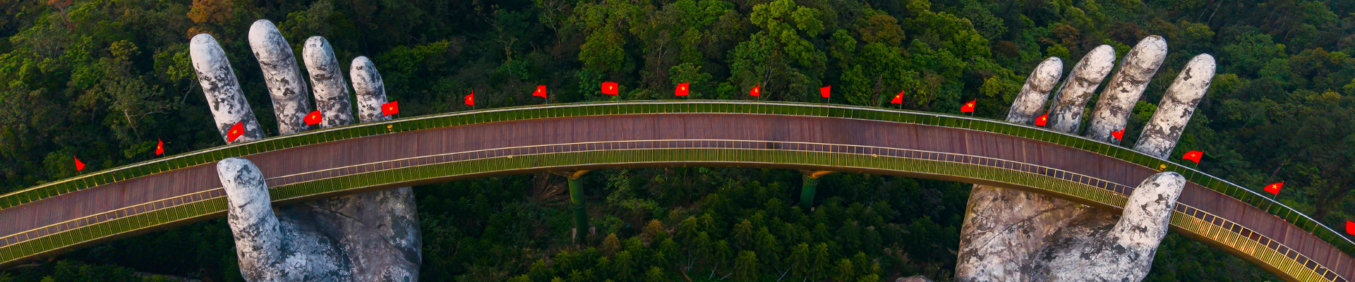 - Ascend to Ba Na Hills and walk across the iconic Golden Bridge floating above the clouds.