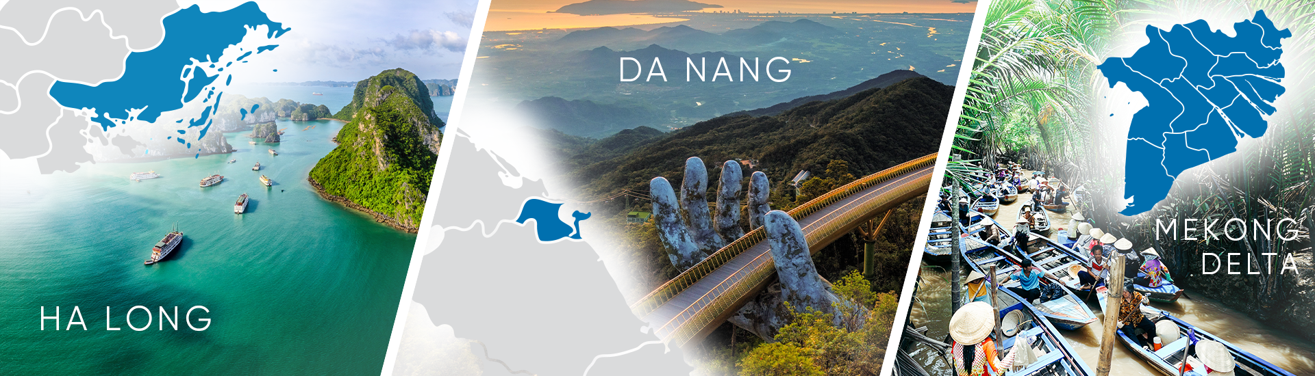 You will be able to enjoy the charming beauty of mountains and rivers in Trang An - Ninh Binh or explore a system of caves with a record number of caves in Phong Nha - Ke Bang, Quang Binh. Open your eyes to the masterpieces of the beautiful creation in HaLong Bay, and admire the complete natural picture with all the elements of sky, clouds, rivers, and mountains.